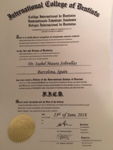 El pasado día 23 de junio la Dra. Isabel Maura, jefa del Área Dental, ha sido admitida como miembro del Colegio Internacional de Dentistas. La celebración tuvo lugar en Ginebra.