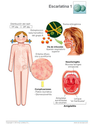 Una de las enfermedades exantemáticas -aquéllas que van con lesiones en la piel- que más frecuentemente diagnosticamos en Urgencias es la escarlatina. En ocasiones los padres vienen asustados porque han pasado una circular en el colegio haciendo referencia a que ha habido varios casos entre la población infantil o ellos mismos conocen casos cercanos. Es una enfermedad que «suena» mal, que de entrada suele tener mala prensa.