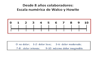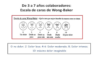 Entre los 3 y los 7 años, el método utilizado es la escala de caras de Wong-Baker mientras que en pacientes mayores de 8 años colaboradores utilizamos la escala numérica de Walco y Howite.